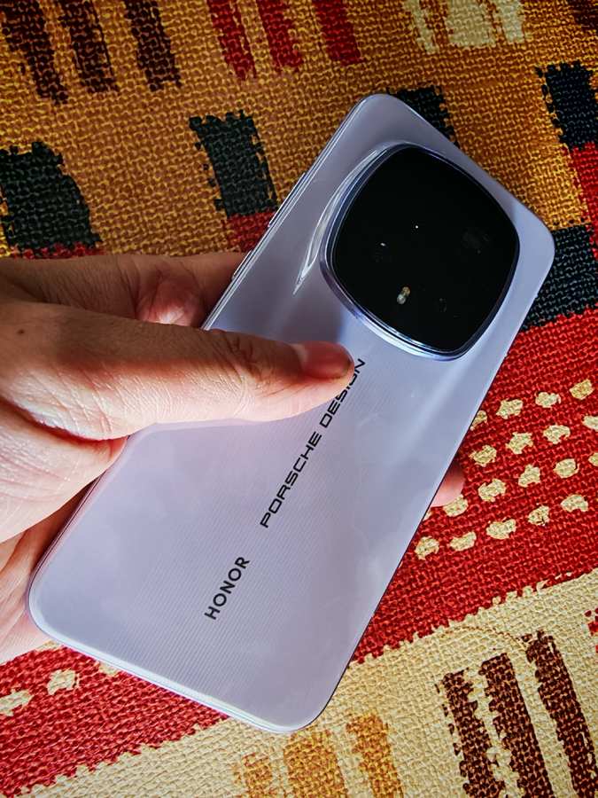 荣耀Magic8 RSR的镜头模组则借鉴保时捷911经典矩阵大灯造型,三颗摄像头以圆角矩阵排列,闪光灯与品牌Logo居中对称,身份标签的辨识度拉满。