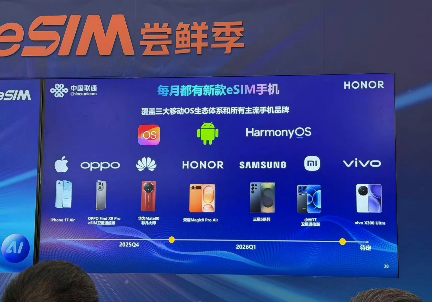 IT之家 1 月 24 日消息,2026 年首款 eSIM 手机 —— 荣耀 Magic8 Pro Air 已于昨日上市。联通华盛通信有限公司终端销售部总经理陈立表示,2026 年每月都将有新款 eSIM 手机上市。