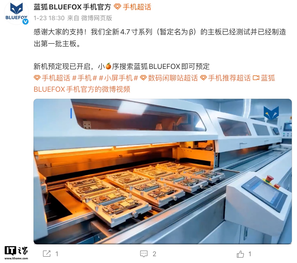 IT之家 1 月 27 日消息,制造商蓝狐披露旗下“蓝狐 β(代号名)”的 4.7 英寸迷你手机首批主板已制造完成,该机将于今年 6 月上市。