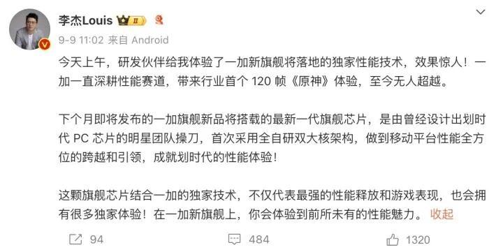 一加的全新年度旗舰一加13也已加入了预热行列,主打满血性能的机型,除了大家都知道的骁龙8 Gen4之外,一加还继续在研究独家的性能技术,适配120帧《原神》,带来更加极致的游戏体验。