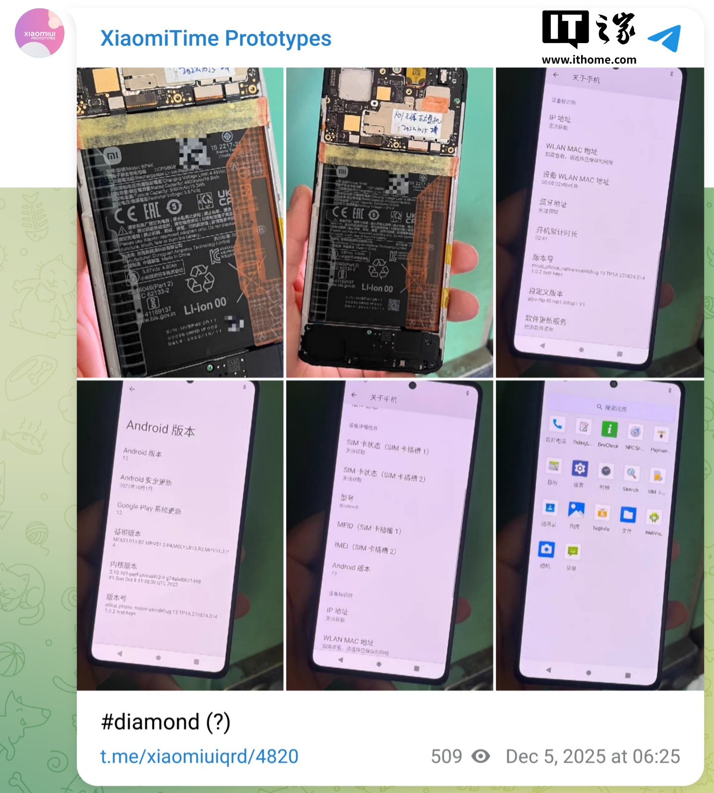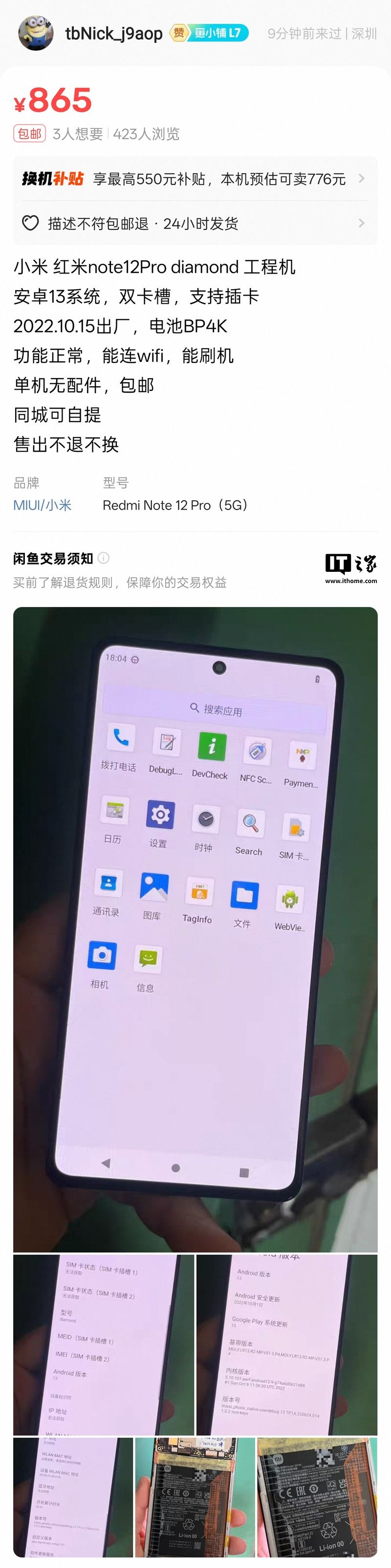 消息称小米最初立项的 REDMI Note 12 Pro 4G 代号为“diamond”(型号 M6),于 2022 年 10 月 11 日就已产出工程样机。