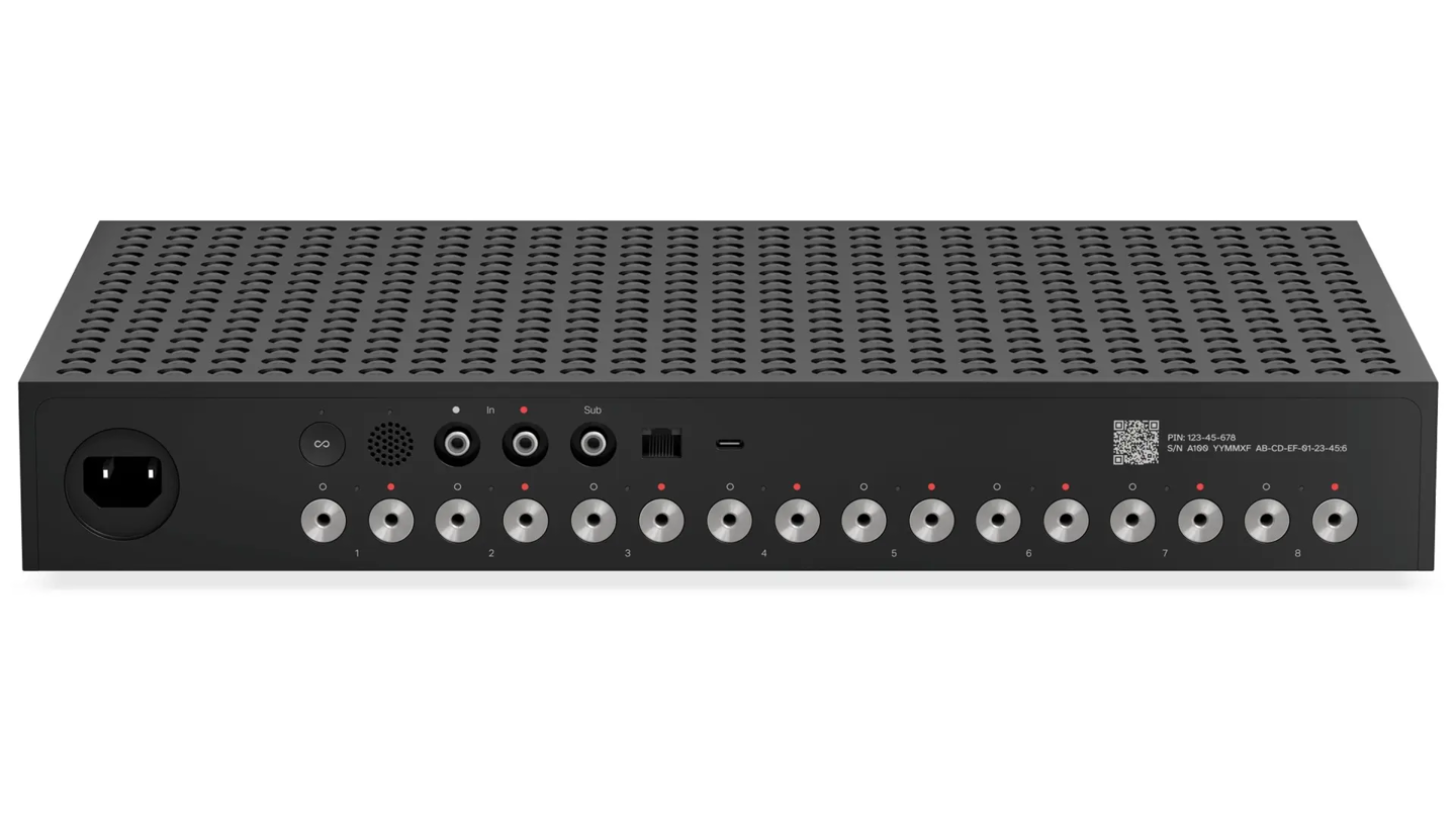 在核心性能方面,Amp Multi 配备了 8 个放大输出接口,每个接口在 8 欧姆阻抗下均能输出 125 瓦的强劲功率,让其能够灵活支持最多 4 个独立分区,单台设备即可驱动多达 24 个 Sonos Architectural 音箱。