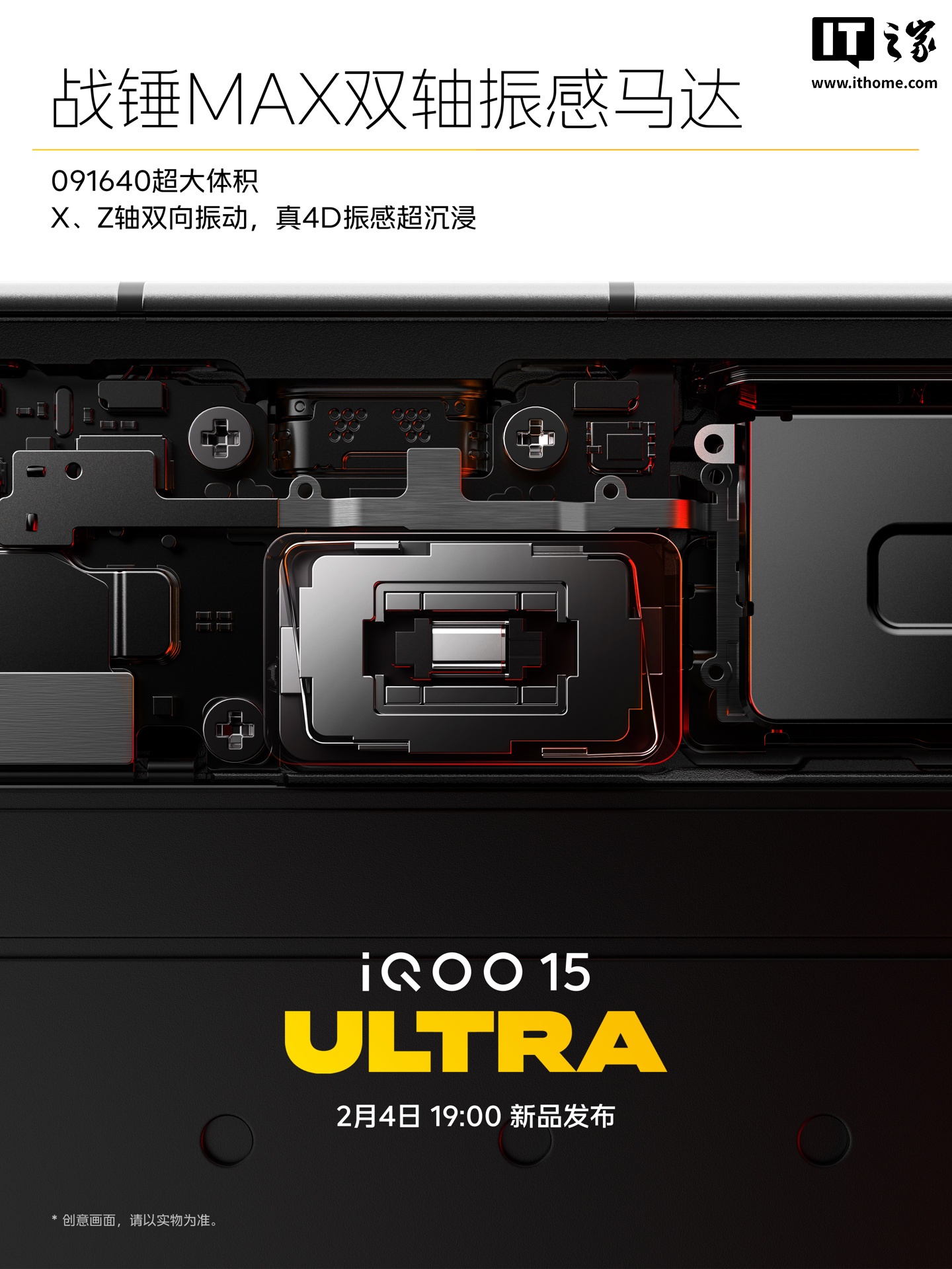 该机还配备「战锤 MAX 双轴振感马达」,号称是 iQOO 史上最大单体振感马达。根据 iQOO 产品经理 @戈蓝V 的介绍,这颗马达是一颗「支持 X、Z 轴双向振动」的 091640 超大体积马达,也是为 iQOO 15 Ultra 单独开发定制的。