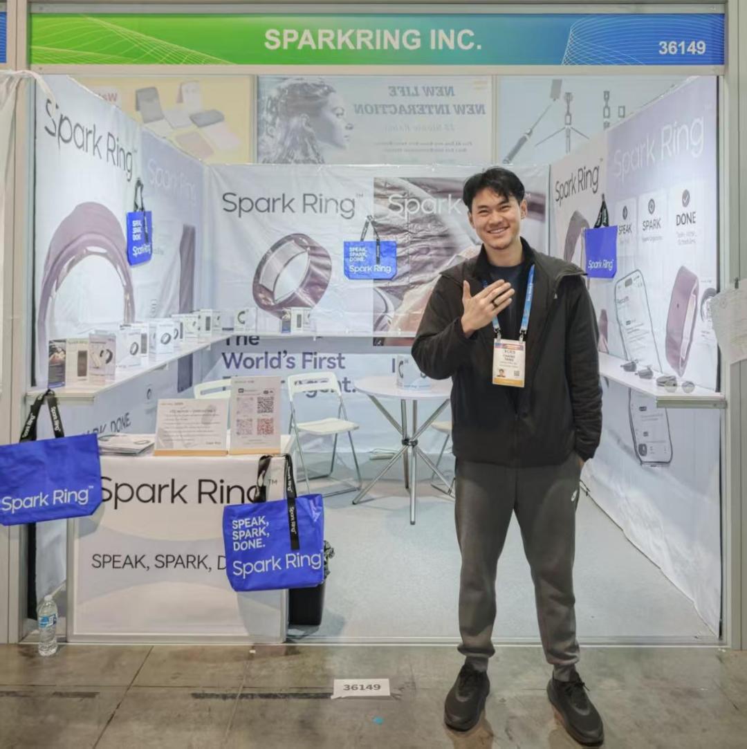 我们摊位在南馆,已经算是外国人最多的。大家一看我们这戒指,OK,又是一个健康戒指。但我们是语音的,他们都没见过,我们放了10台样机,现场可以跑通,你说话在我的APP上面就出来了,他们觉得这个体验特别新颖,一直问去哪里买。