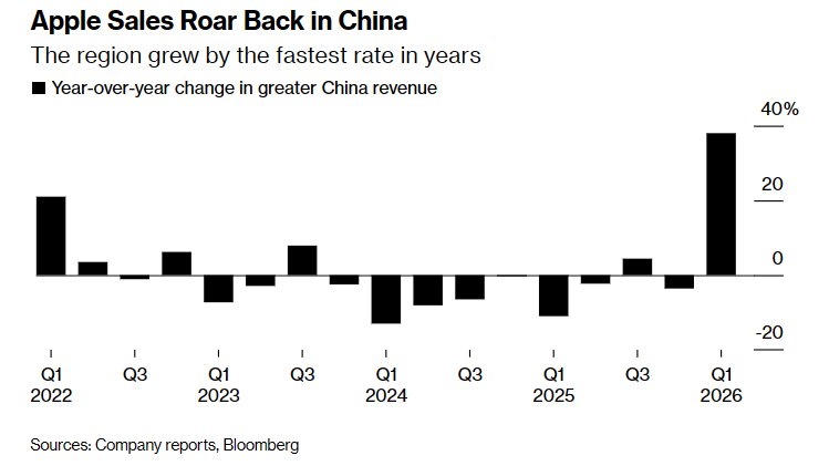 苹果公司在假日期间在中国市场实现了强劲反弹,新款iPhone 17的需求推动该公司自2021年底以来首次在该地区实现了250亿美元的季度销售额。