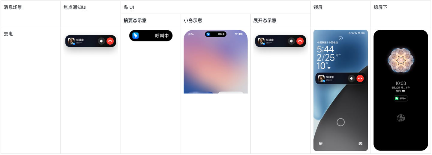 应用主动发起音 / 视频通话,称为去电场景。去电时,由于应用在前台,不需要展示横幅通知,只在屏幕左上角展示通话胶囊。