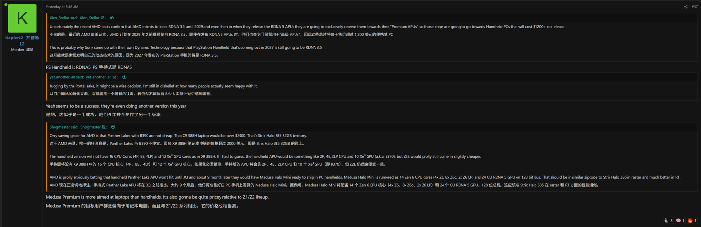 据介绍,这款掌机将采用 AMD RDNA 5(IT之家注:UDNA)架构,目前内部研讨方案或定为 16CU 方案,可平衡功耗与性能。