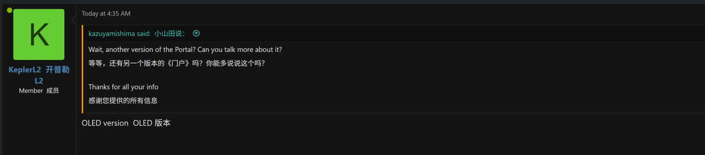据悉,索尼近期为原版 Portal 掌机解锁了云游戏串流功能,因此这一爆料看起来相当合理。并且,Portal OLED 本质上是一款生命中期改款机型,除屏幕外预计不会有特别多升级点。