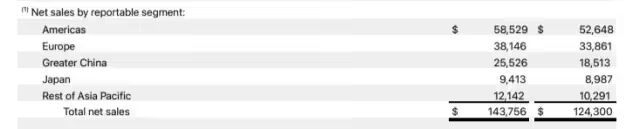 财报显示,苹果当季实现营收 1438 亿美元(IT之家注:现汇率约合 1 万亿元人民币),同比增长 16%,创下公司历史最高季度营收;稀释后每股收益(EPS)为 2.84 美元,同比增长 19%,同样刷新纪录。