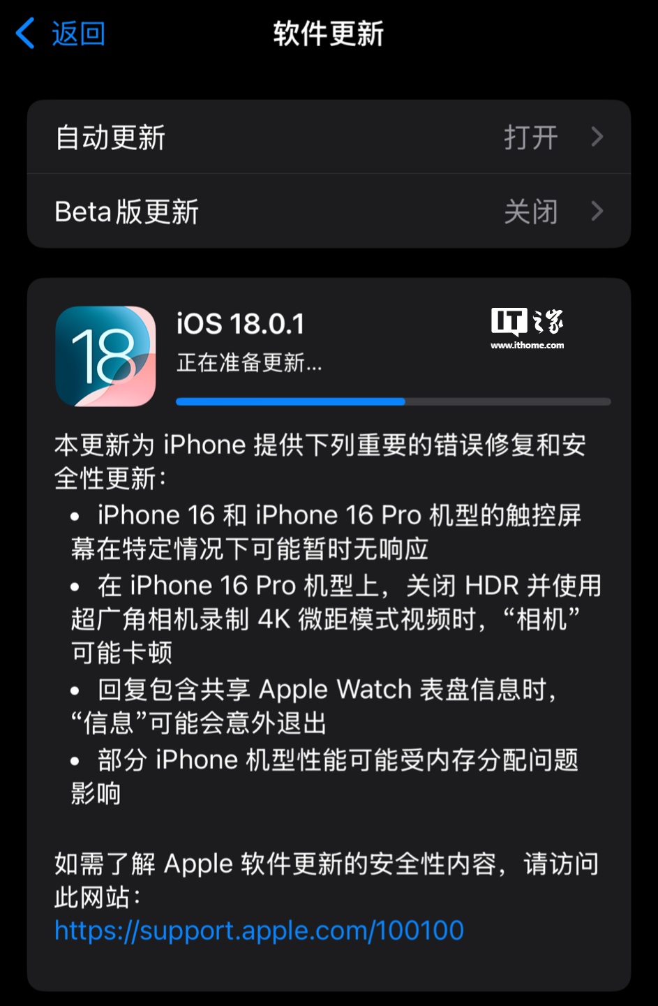 IT之家附上 iOS 18.0.1 更新内容如下: