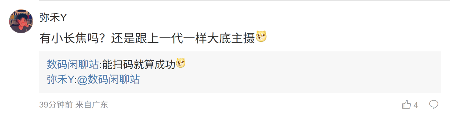 ”;另一名用户则询问道:“有小长焦吗?还是跟上一代一样大底主摄