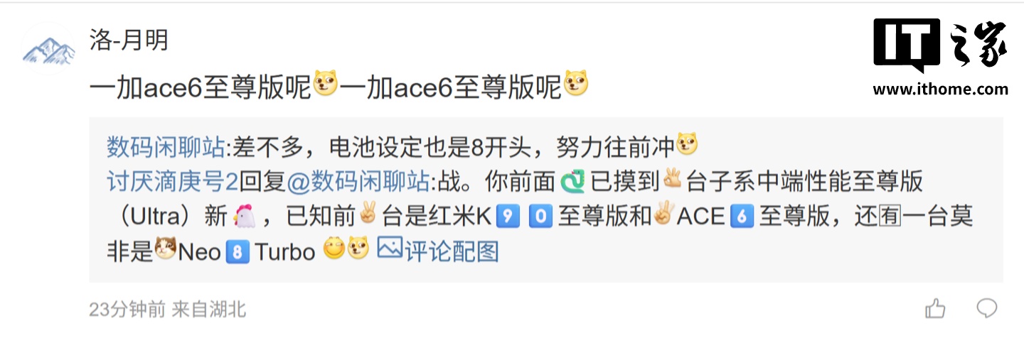 后续有用户在评论区询问:“一加 ace6 至尊版呢 一加 ace6 至尊版呢