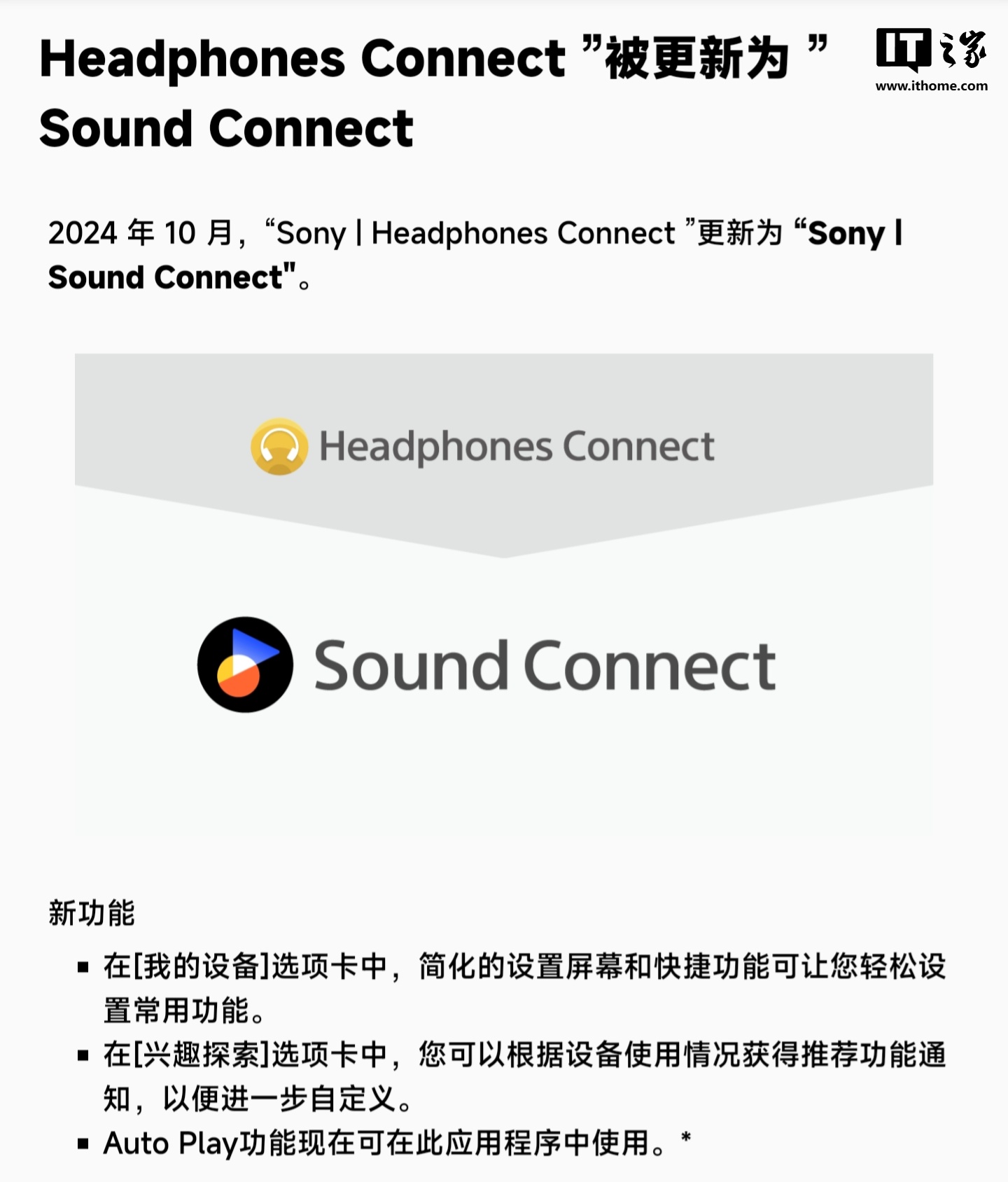IT之家 10 月 4 日消息,索尼官方宣布,2024 年 10 月, Headphones Connect 应用更名为 Sound Connect。