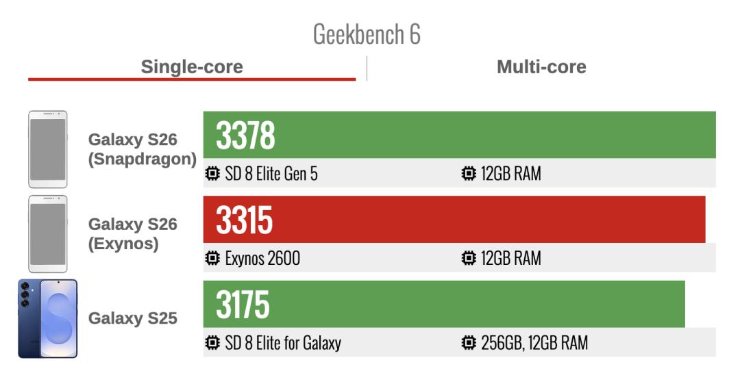 三星官方口径说「Exynos 2600 比 2500 快上 39%」,泄露的 GB6 跑分甚至已经超过了去年 S25 使用的骁龙 8 Elite for Galaxy: