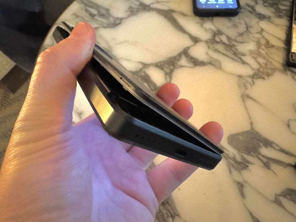 为了证明这一点,塞诺透露,我手中的这款MC03样机是Punkt团队自周日以来一直展示的同一款。当我周三下午与他见面时,手机电量还剩下57%——而且期间没有充过电。