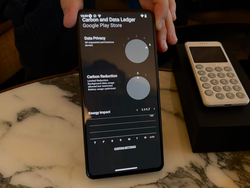 但MC03还包括了一种缓解部分数据泄露的方式,即一个安全拨盘,可以在每个应用的设置中手动调整。拨到1时,应用的工作方式与在任何普通手机上大致相同,后台有进程在运行。但拨到5时,应用会被锁定并切断与互联网和手机传感器的连接,不共享任何数据。第五级是默认设置,如果你手动将其拨回,应用会在三天后自动重置为5。