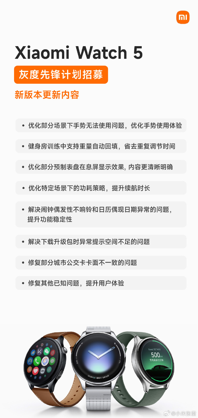 IT之家 2 月 6 日消息,小米集团手机部副总裁、可穿戴部总经理张雷今日宣布,小米手表 5 全新版本先锋计划即将开启。