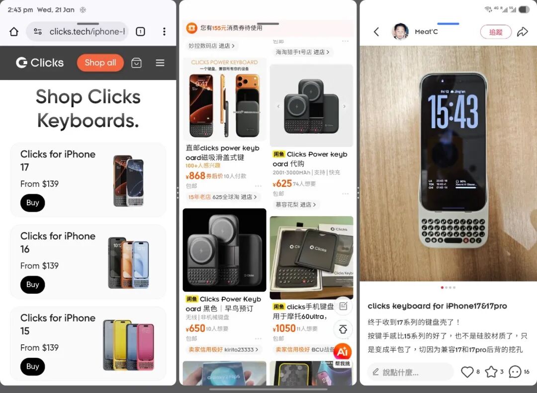 ▲ 三折叠的经典使用场景:左侧查询,中间比价,右侧评论
