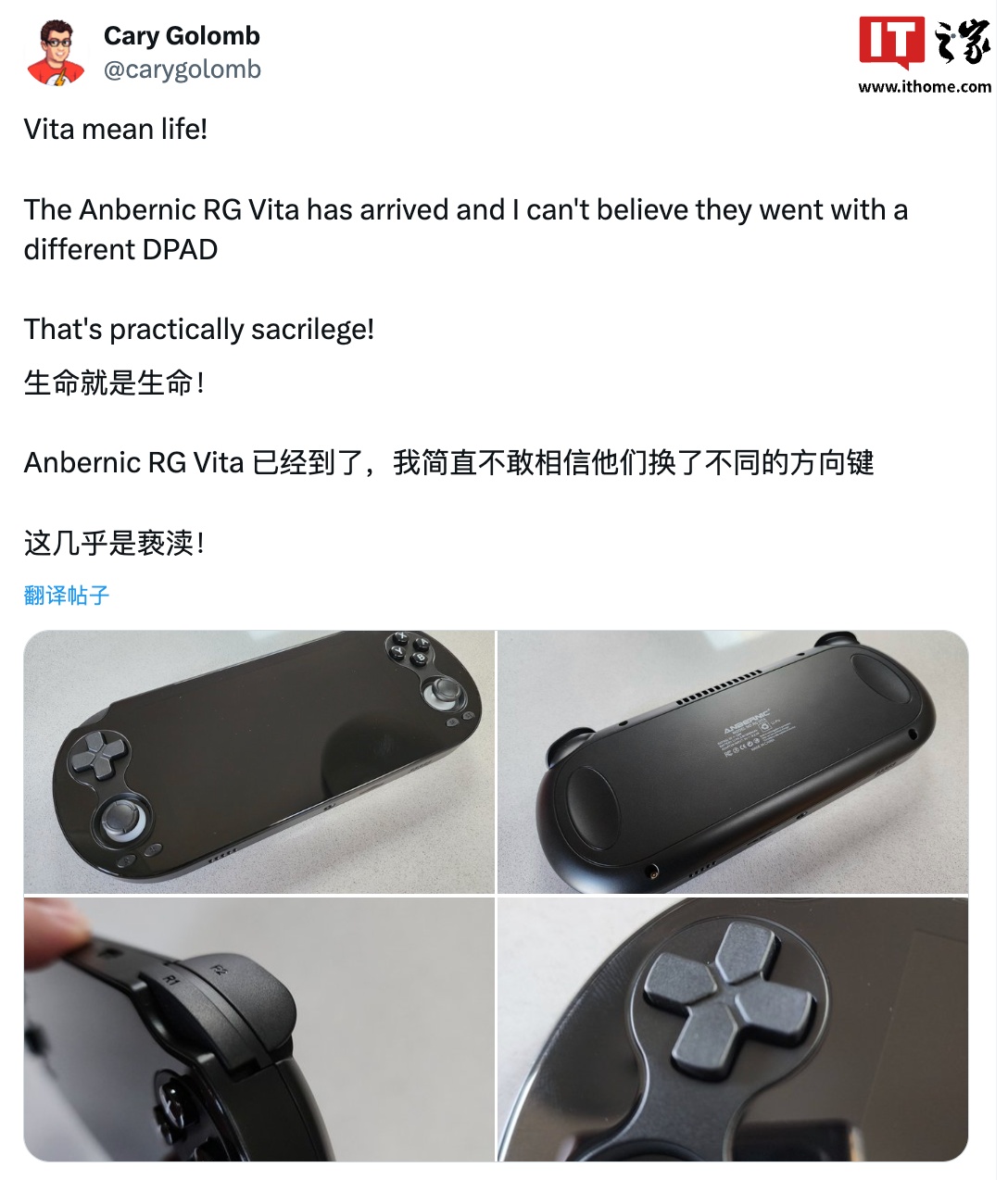 IT之家 2 月 9 日消息,YouTube 博主 The Phawx 今天在 X 平台透露,Anbernic 安伯尼克 RG Vita 掌机将搭载紫光展锐虎贲 T618 芯片,而非 T820。