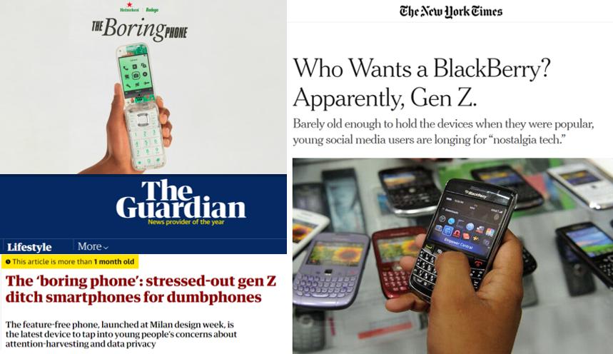 这种逃离,也反映在人们的购买选择上。Z 世代掀起不支持社媒 App 的“笨手机”复古潮,2021-2024 年,18-24 岁群体中“砖头机”的购买量上升 148%,而同年龄段智能手机使用量下降 12%。