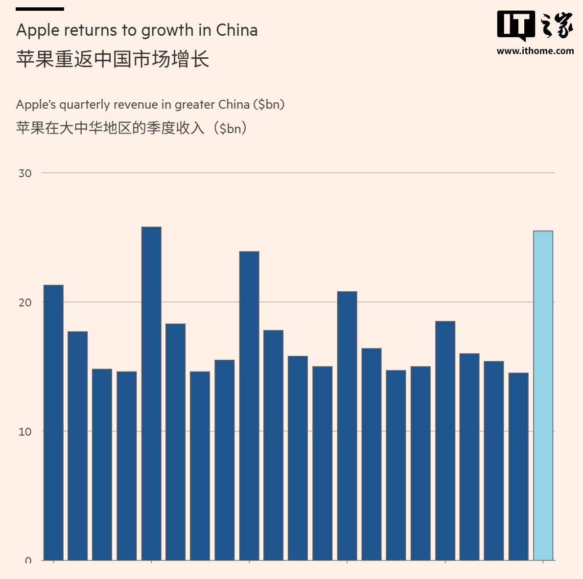 特别是在中国市场,iPhone 销售额飙升至 260 亿美元,同比增长约 38%;贡献了全球总销量的五分之一,成为本季度增长最为显著的地区之一。