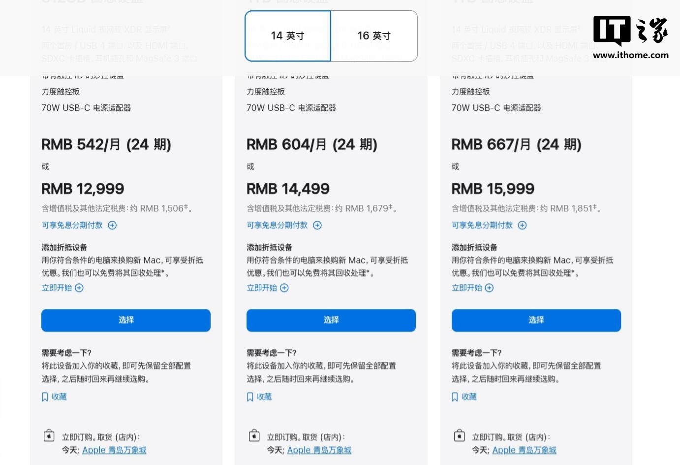 而 14 英寸 MacBook Pro 的其余版本如 M3 8GB+512GB、8GB+1TB、16GB+1TB;M3 Pro 18GB+512GB、18GB+1TB 以及 M3 Max 36GB+1TB 都是现货销售。