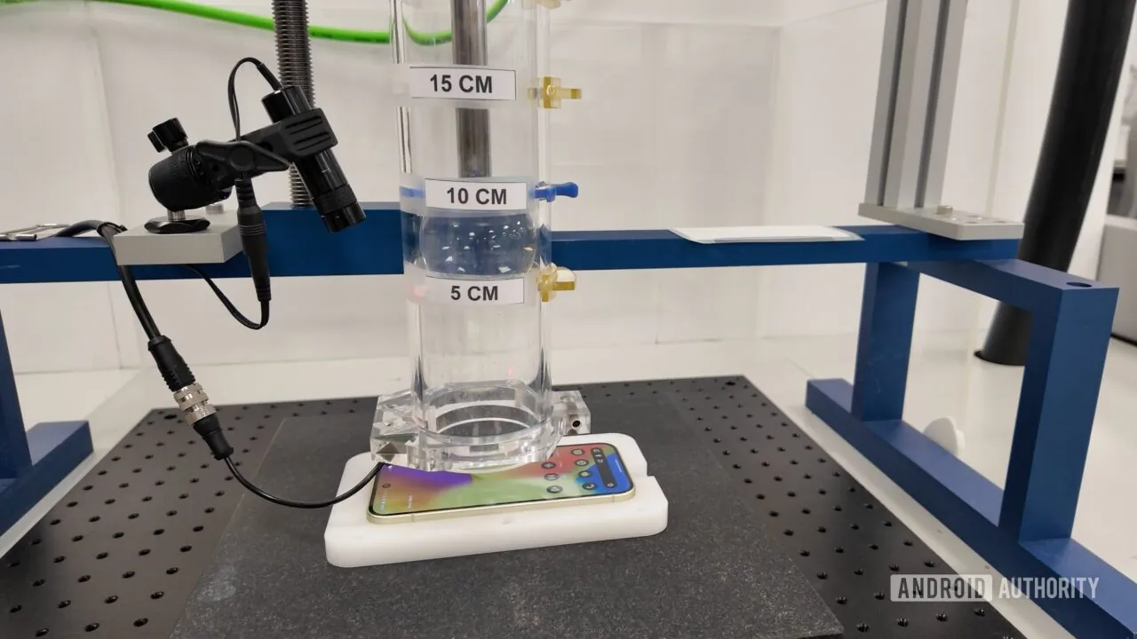 在可靠性实验室中,为了验证 Pixel 手机防水性能,设备会被置于旋转台上,接受长达 10 分钟的全角度喷水测试(模拟 IPX4 级暴雨或汗水场景),且屏幕在此期间需保持常亮。