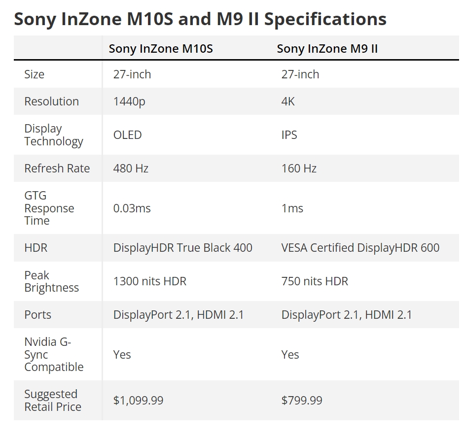 InZone M10S适用于竞技PC游戏玩家,而M9 II更适合那些在游戏时优先考虑图像质量和沉浸感的用户。