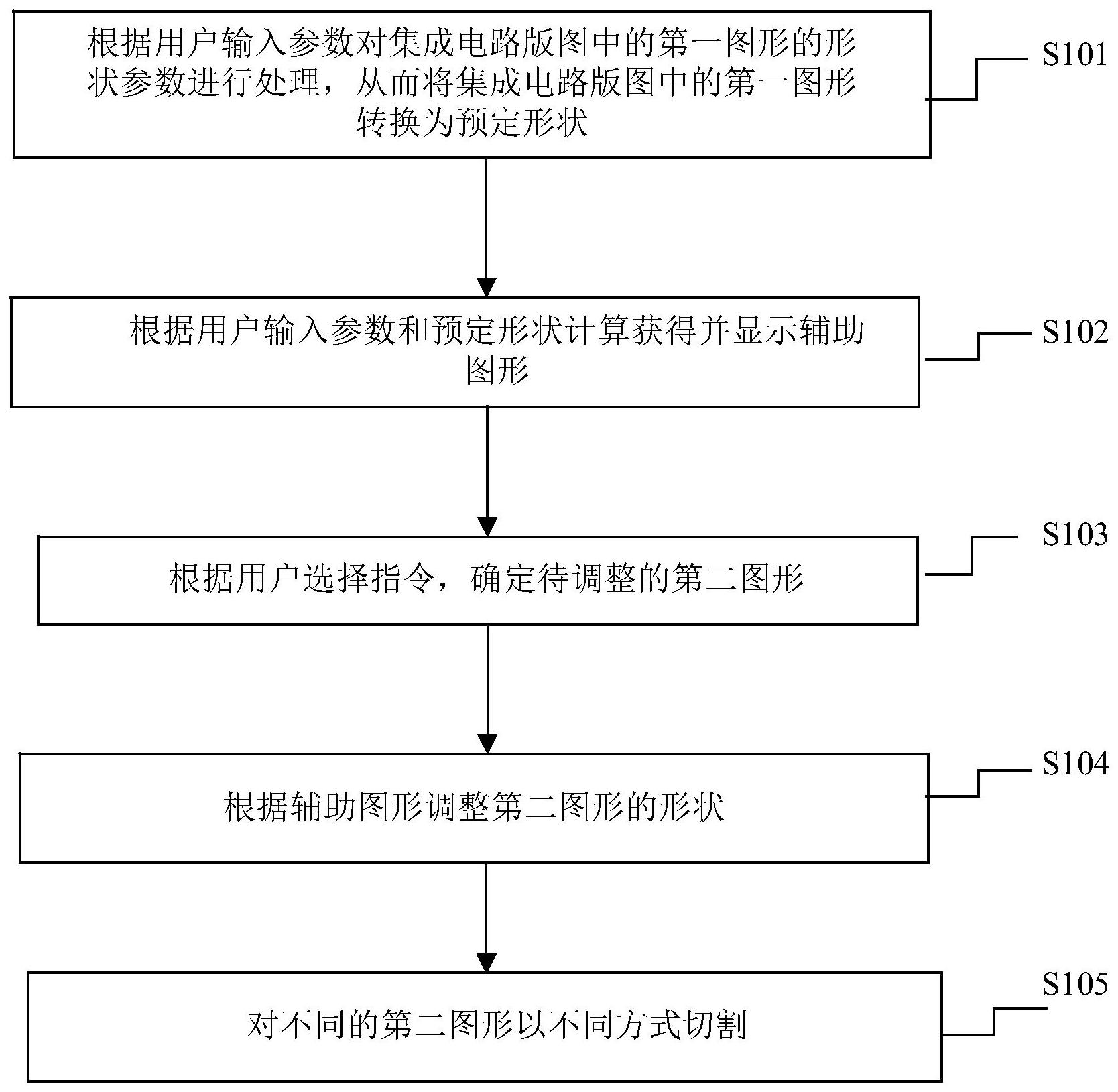 本申请公开了一种集成电路版图的处理方法及处理系统。该处理方法包括:根据用户输入参数对所述集成电路版图中的第一图形的形状参数进行处理,从而将所述集成电路版图中的第一图形转换为预定形状;根据所述用户输入参数和所述预定形状计算获得并显示辅助图形;以及根据所述辅助图形调整第二图形的形状,其中,所述辅助图形的轮廓形状与所述预定形状的轮廓形状一致且成比例。该处理方法可以快速有效、正确地在集成电路版图中自动处理第一图形和第二图形。