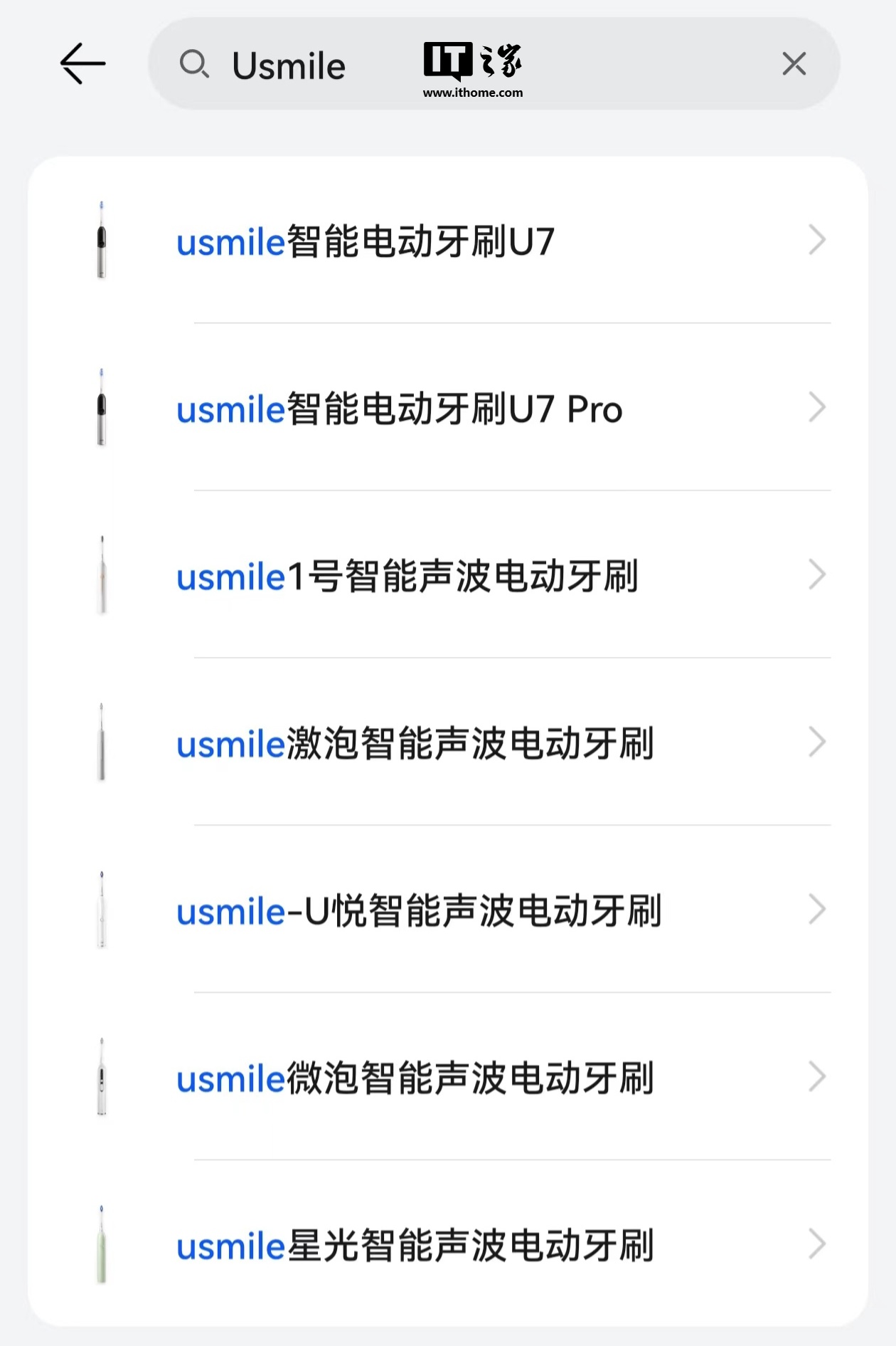 IT之家查询华为智慧生活 App 获悉,目前新品牙刷已经可以在应用中搜索并添加绑定,共有 U7 和 U7 Pro 两款。