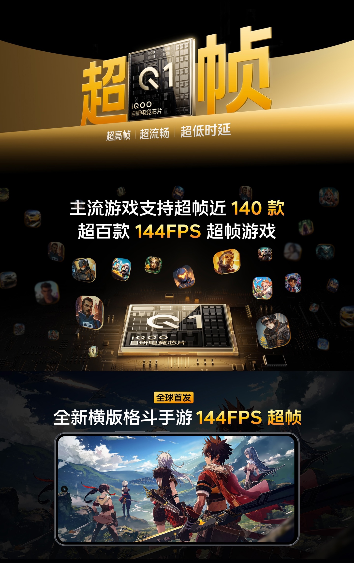目前,iQOO 12 系列、iQOO Neo9 系列部分机型搭载自研电竞芯片 Q1,其主要作用于游戏场景,支持 PC 级超分,近 140 款游戏支持超帧。