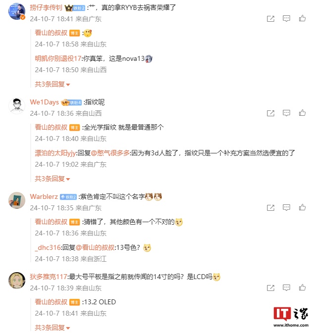 结合评论区讨论来看,博主此次爆料的并非荣耀 Magic 7 系列机型,而是华为 nova 13 系列手机。另外,华为最大号的平板(预计为华为 MatePad Pro 13.2)也要出柔光版,屏幕材质为 OLED。