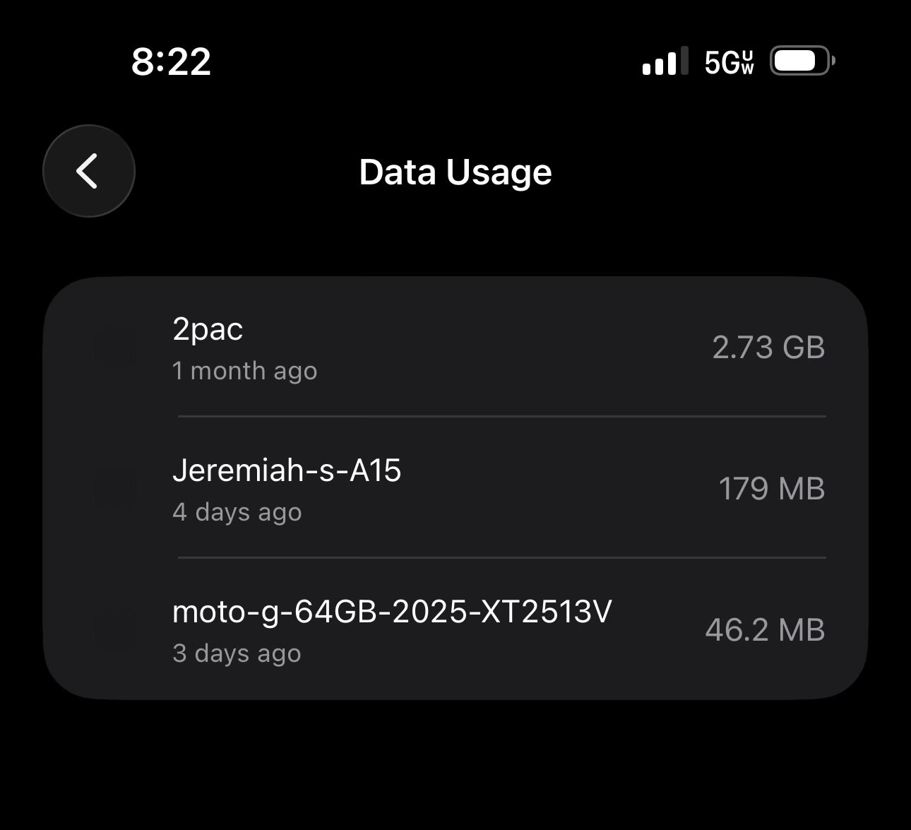 进入“数据使用量”菜单后,系统会详细列出每一台连接过热点的设备名称及其消耗的具体流量数值。IT之家注:用户此前往往只能看到热点消耗的总流量,难以分辨究竟是哪台设备占用了带宽。