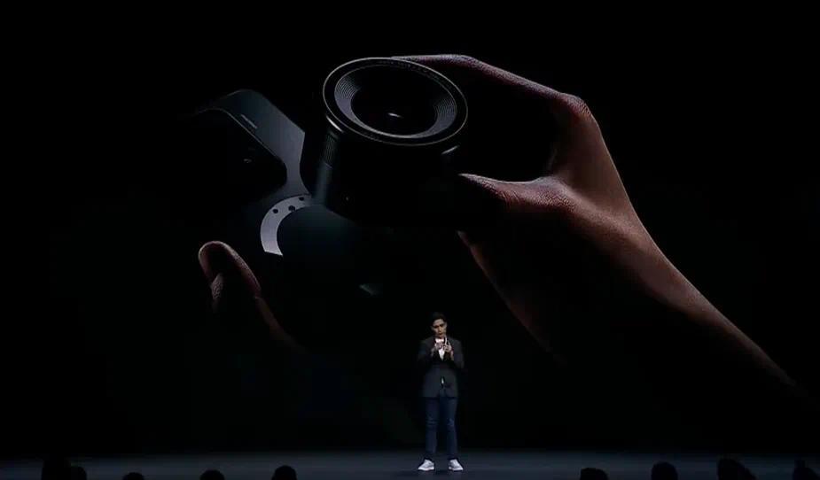 它在硬件上,由经过魔改的小米手机,以及一枚等效35mm,光圈f/1.4,1亿像素的M43传感器的“镜头式”概念相机构成。