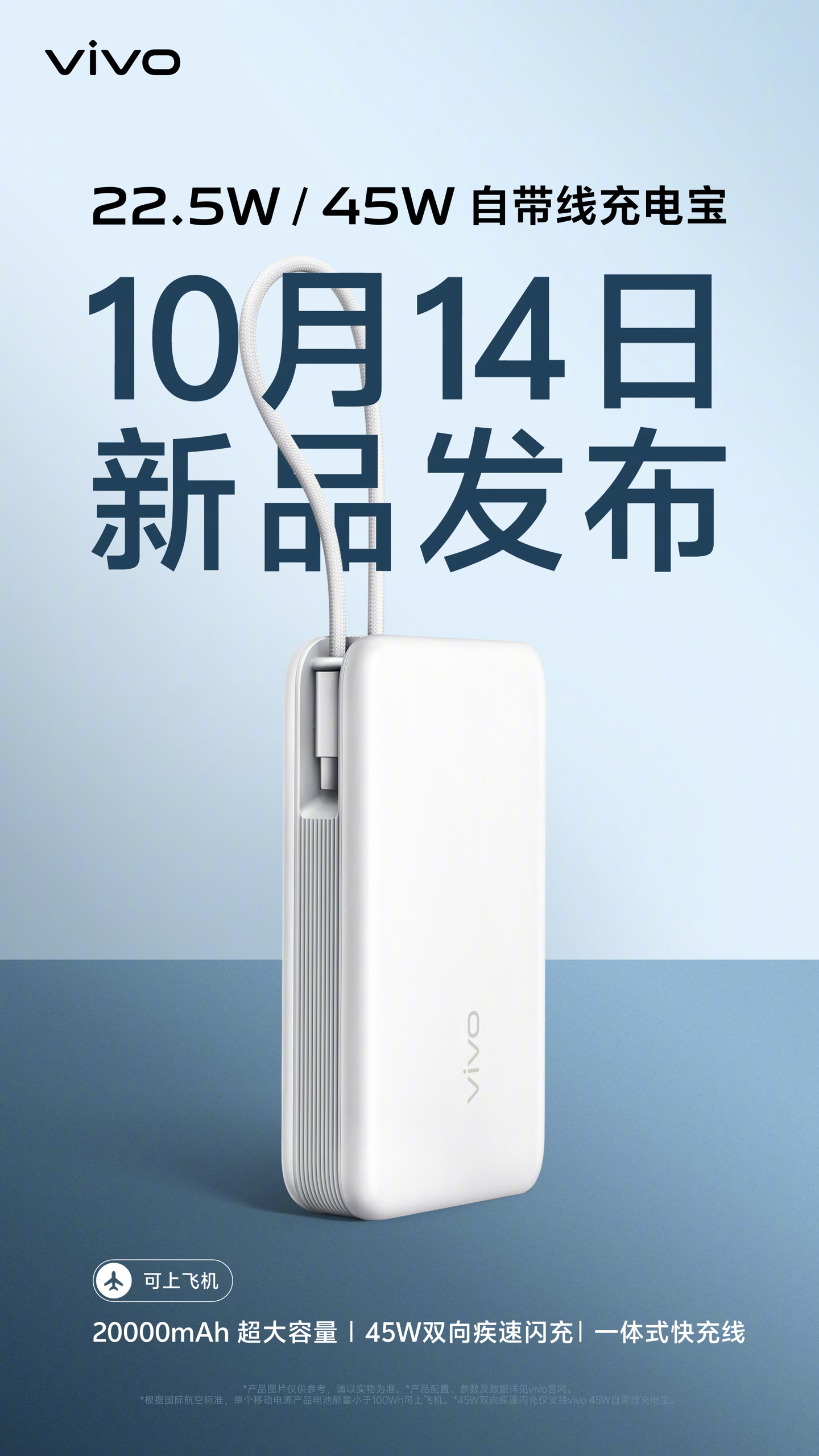 IT之家 10 月 8 日消息,vivo 22.5W / 45W 自带线充电宝现已开启预约,将于 10 月 14 日与 vivo X200 系列旗舰手机一同上市。