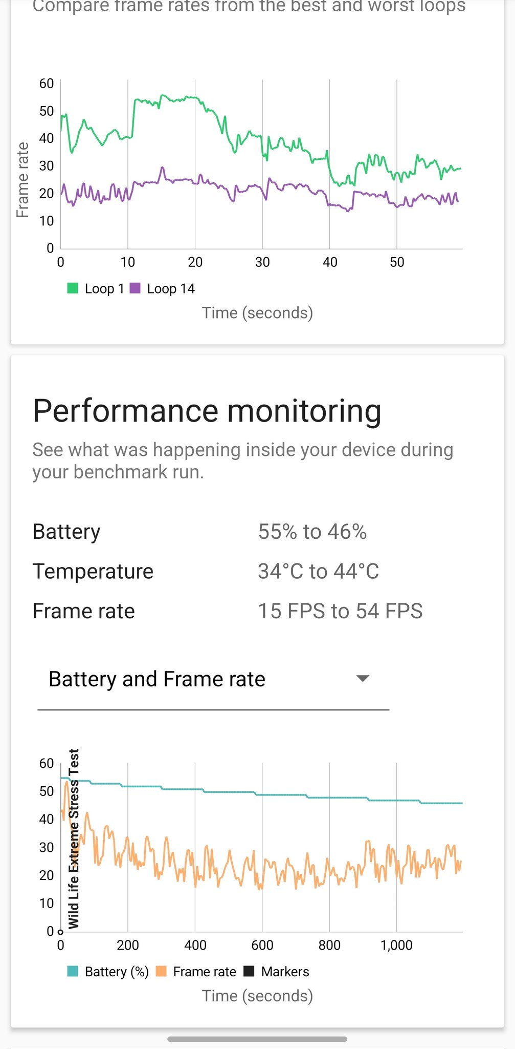 同时,该机完成了严苛的 3DMark Wild Life Extreme 压力测试,其最高循环分数为 6489 分,最低循环分数为 3455 分,系统稳定性达到 53.2%。