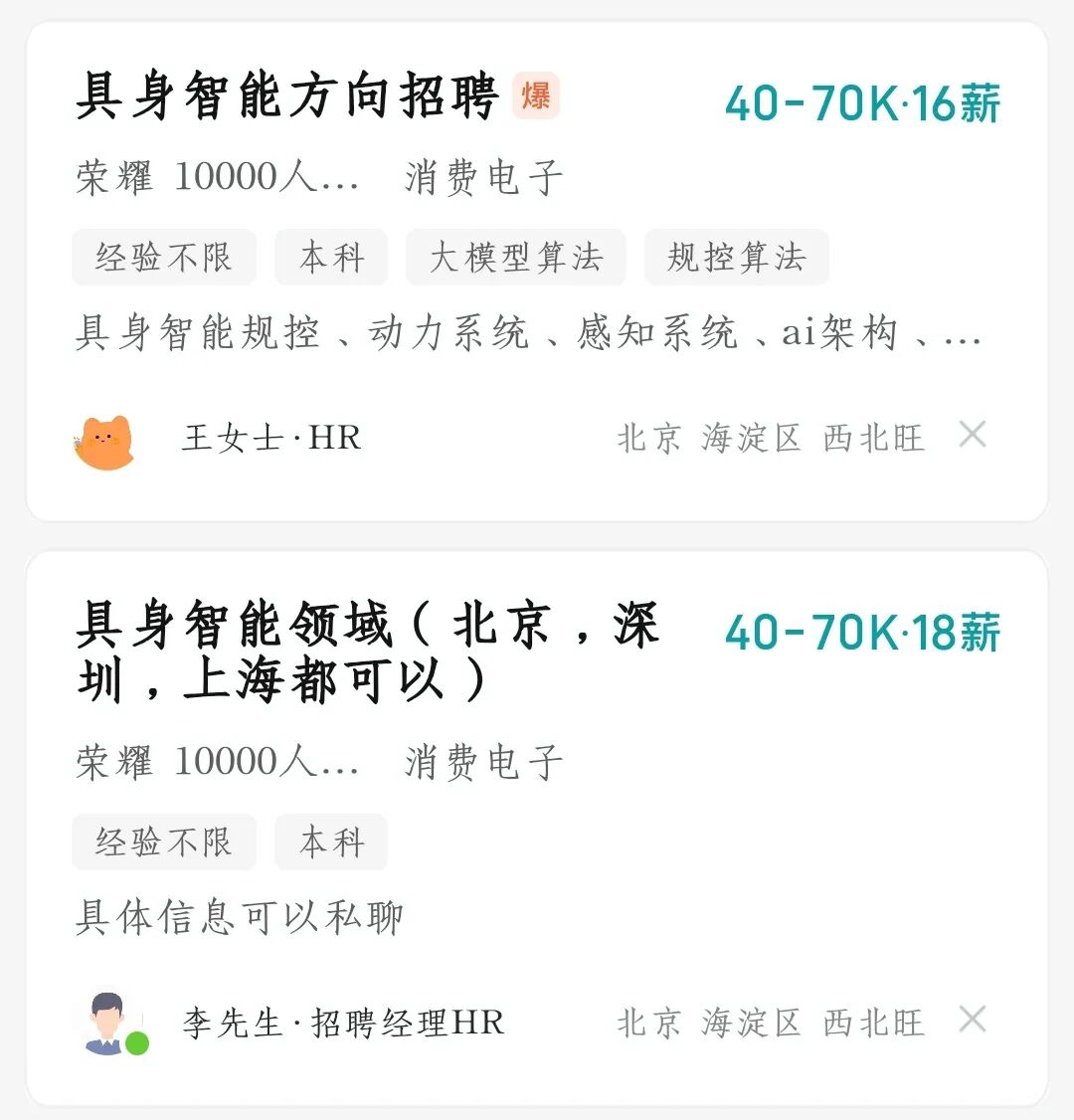 针对机器人领域,荣耀在去年实际就开始布局。最先被外界感知到的是招聘信息: