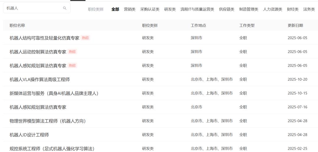 岗位包括具身AI架构师、动力系统工程师、整机系统工程师、硬件系统工程师、灵巧手设计工程师,也包括机器人结构可靠性及轻量化仿真专家、机器人运动控制算法专家、机器人感知规划算法专家等等。