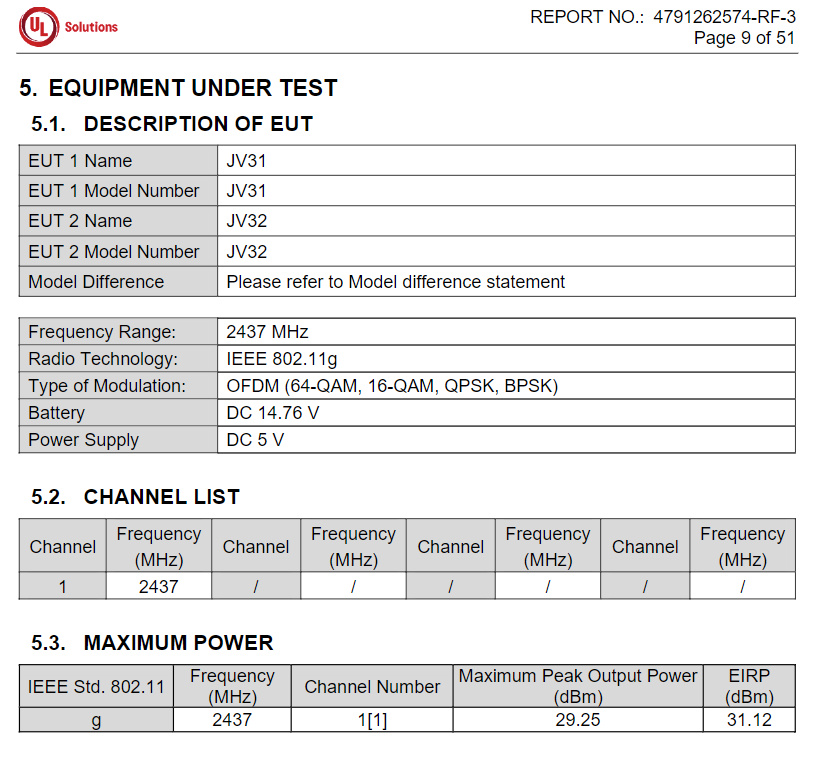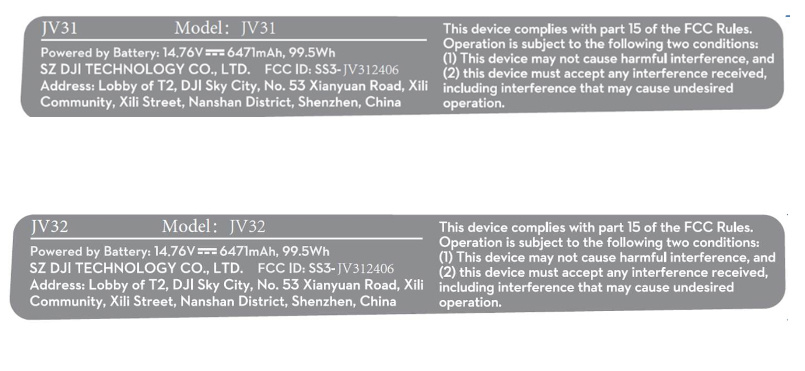 根据 FCC 认证文件信息,“JV31”和“JV32”都包含 99.5 Wh 电池(14.76V / 6471 mAh),推测大疆 Mavic 4 无人机飞行时间会优于 Mavic 3(46 分钟)或 Mavic 3 Pro(43 分钟),后两者电池容量为 77 Wh(15.4V / 5000 mAh)。