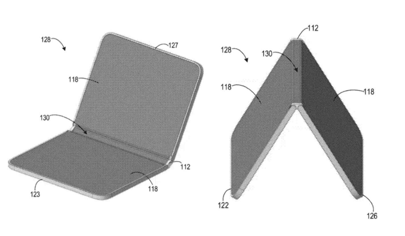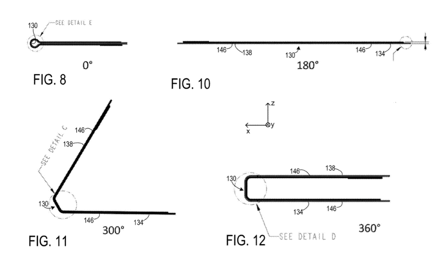 微软在专利中透露他们利用“激光改性”和“湿刻技术”开发了一种可以使设备面板朝不同方向折叠的方法,同时该机铰链部分设置有特殊凹槽,以避免柔性屏幕在折叠时产生折痕。