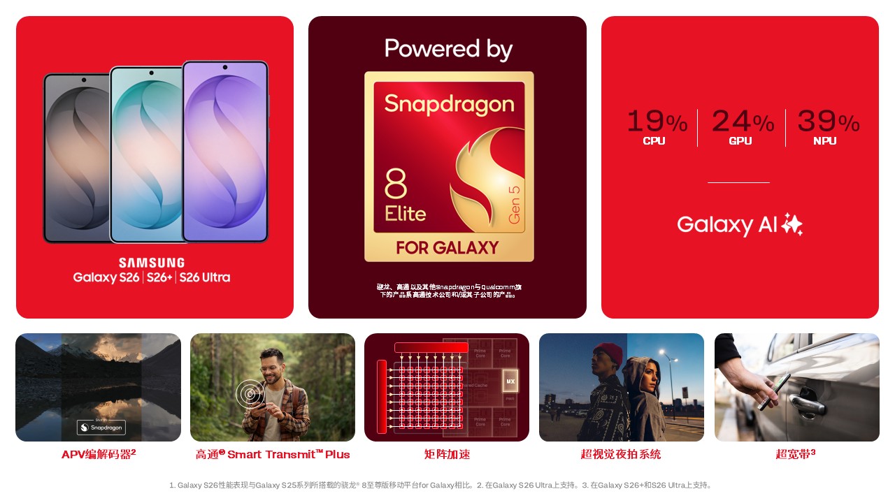 高通公司高级副总裁兼亚太区总裁O.H. Kwon表示:“我们很高兴能深化与三星的合作,通过Galaxy S26系列开启由第五代骁龙8至尊版for Galaxy驱动的移动智能新篇章。这一里程碑彰显了双方战略合作伙伴关系的深厚基础,也体现了我们共同致力于在三星旗舰终端上打造AI增强的性能和无缝用户体验的坚定承诺。”