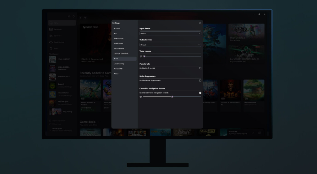 在 Xbox PC 应用中,微软添加了新的音效,以帮助提高手柄的操控响应性。这些可选的音频提示会在关键操作时播放 —— 比如切换焦点、选择项目或退出 —— 为每次交互增添更多反馈。