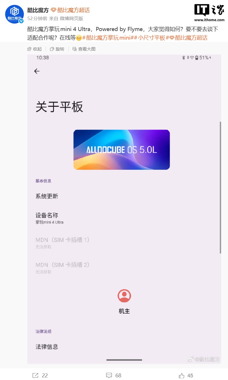 酷比魔方掌玩 mini 4 Ultra,Powered by Flyme,大家觉得如何?要不要去谈下适配合作呢?在线等