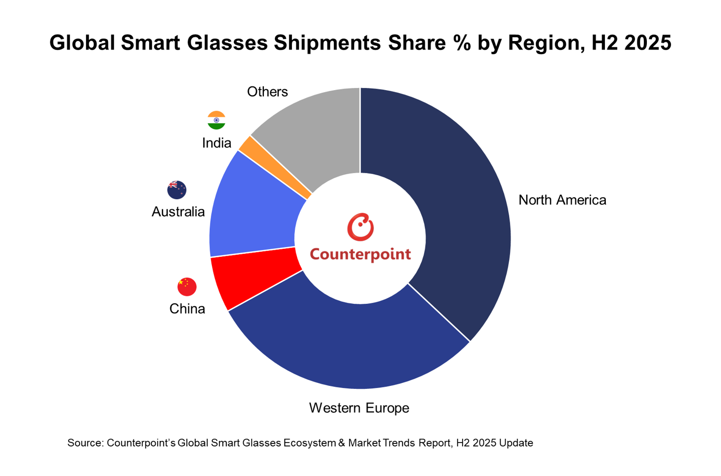 区域方面,北美是最大市场,占比 37%,西欧升至 30%。印度出货量增长 15 倍,但整体份额仍仅 2%。中国市场份额为 6%,尽管出货量增长,但规模仍有限。