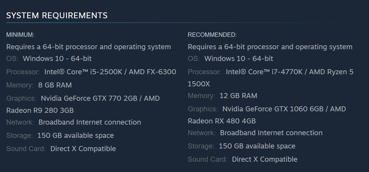 然而IT之家注意到,《荒野大镖客:救赎》的最低配置要求在 CPU 和 GPU 方面均高于《荒野大镖客 2》。前者需要 GTX 960 显卡,而后者仅需 GTX 770。
