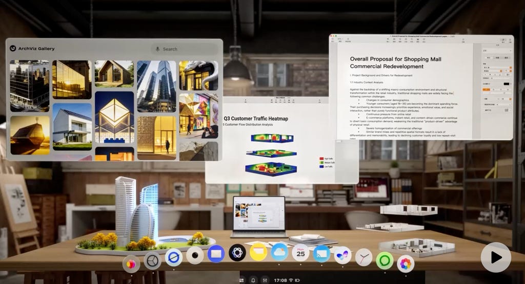 Pico OS 6的布局更侧重于多窗口PC计算体验,同时亦能兼顾混合现实需求。字节跳动供图