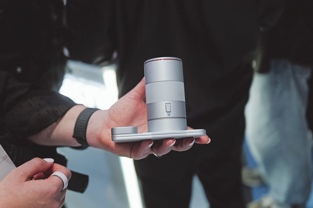 Tecno手机的核心,是一款极致纤薄的安卓手机,其背面巧妙设计了几个连接器。这些连接器可与公司在巴塞罗那MWC展台上展示的各式模块无缝对接。作为一名摄影爱好者,我自然对那个巨型变焦模块情有独钟。