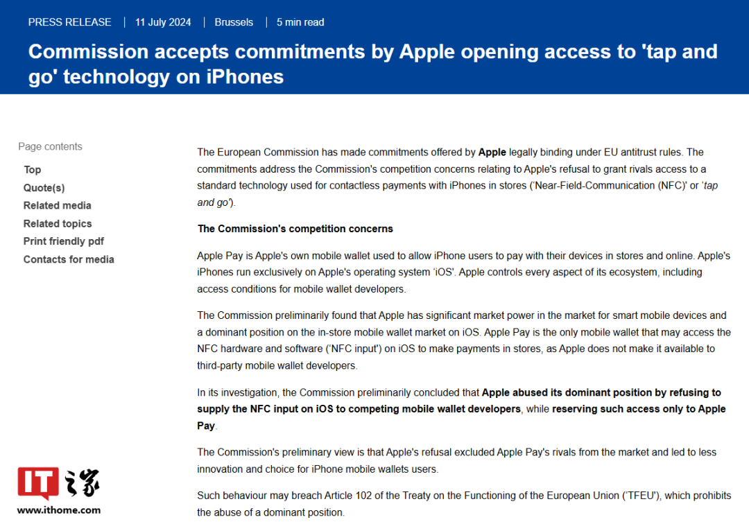但时至今日,苹果仍牢牢把控着 NFC 底层权限不松手,即便是面临欧盟挥舞的大棒,也没做出让步。