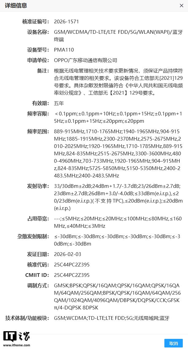 IT之家 3 月 4 日消息,昨日有一款型号为 PMA110 的 OPPO 新机通过了国家 3C 质量认证,经 @数码闲聊站 确认为即将发布的 OPPO Find X9 Ultra。