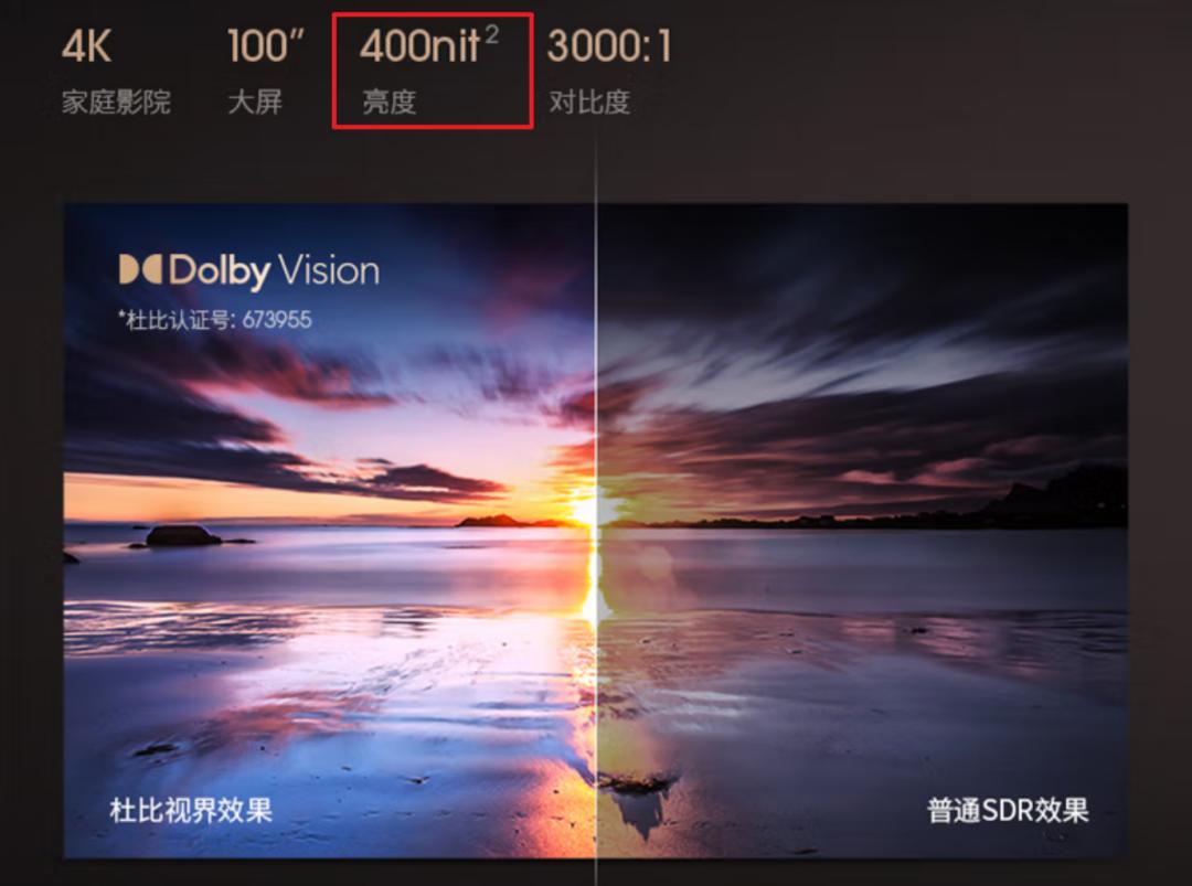 举个例子,现阶段国内发布的高端投影仪,几乎都采用了激光技术,借助激光可以带来更好的色彩表现和更高的亮度,一台售价过万的激光投影仪,投射出一百寸的画面,亮度在 400 尼特左右。
